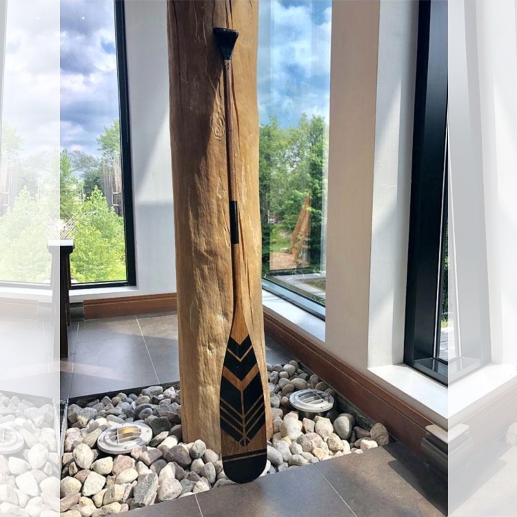 * Afin de préserver l’aspect d’origine de la pagaie, ne pas le laisser à l’extérieur l’hiver. Privilégiez un endroit couvert d’une galerie pour son installation murale extérieure. Elle sera ainsi mieux protégée des éléments et restera belle plus longtemps!